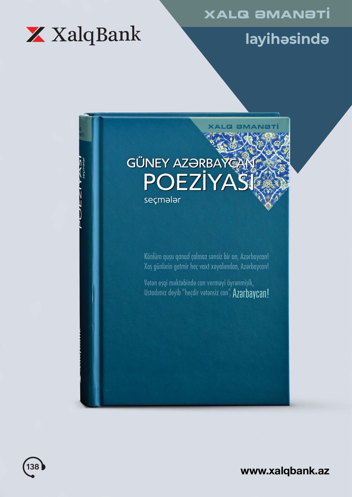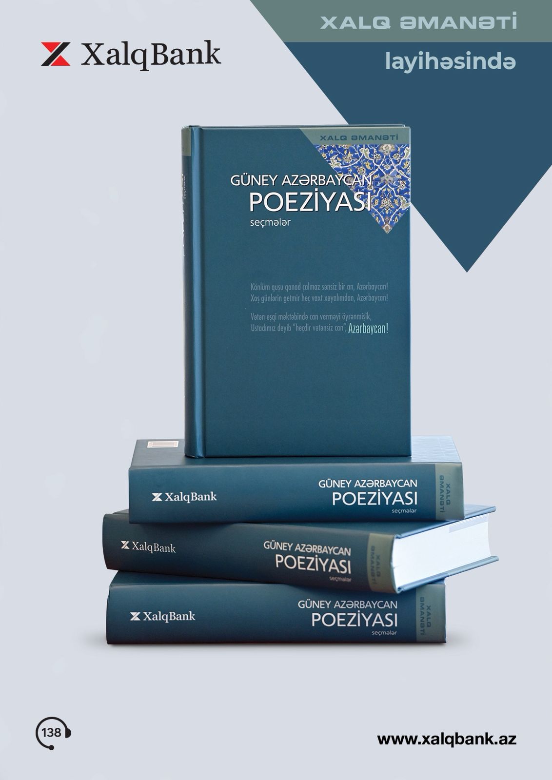 Xalq Bank “Xalq Əmanəti” layihəsi çərçivəsində 25-ci kitabını təqdim edir. Bu nəşr Cənubi Azərbaycan poeziyasına həsr olunub.