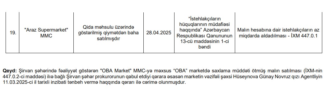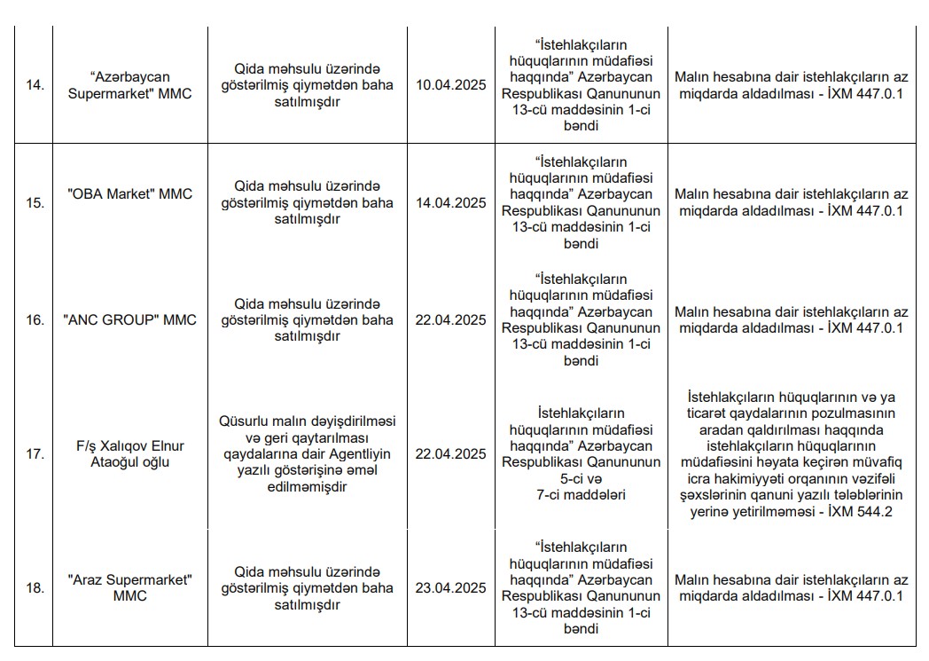 Dövlət Agentliyi 19 biznesi cərimələyib - SİYAHI, ADLARI