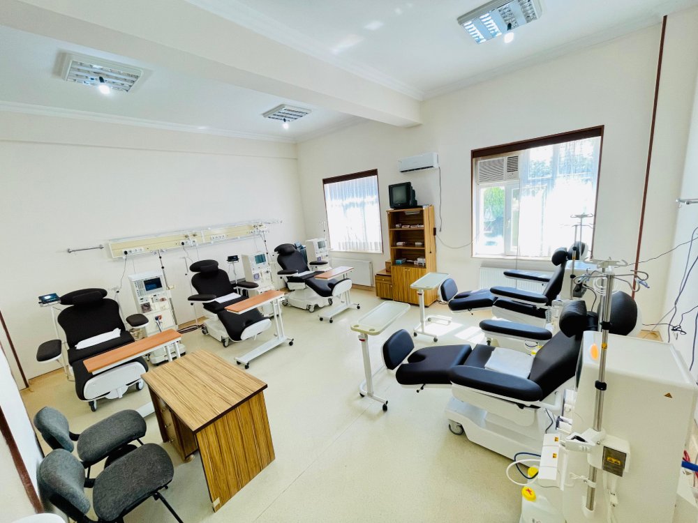 Yaradılan mərkəzdə pasiyentlərə daha səmərəli, keyfiyyətli və komfortlu tibbi xidmətin göstərilməsi məqsədilə müvafiq satınalmalar həyata keçirilmiş, ən son texnologiyalara uyğun istehsal olunmuş 53 ədəd hemodializ cihazı və müalicə prosesinin daha rahat və effektiv təşkili üçün qurğuya inteqrasiya edilmiş internet bağlantısı və qulaqcıq girişli, yüksək təsvir keyfiyyətinə malik televizorla təchiz edilmiş, 3 idarəetmə mühərrikli 48 ədəd hemodializ kreslosu alınmışdır.