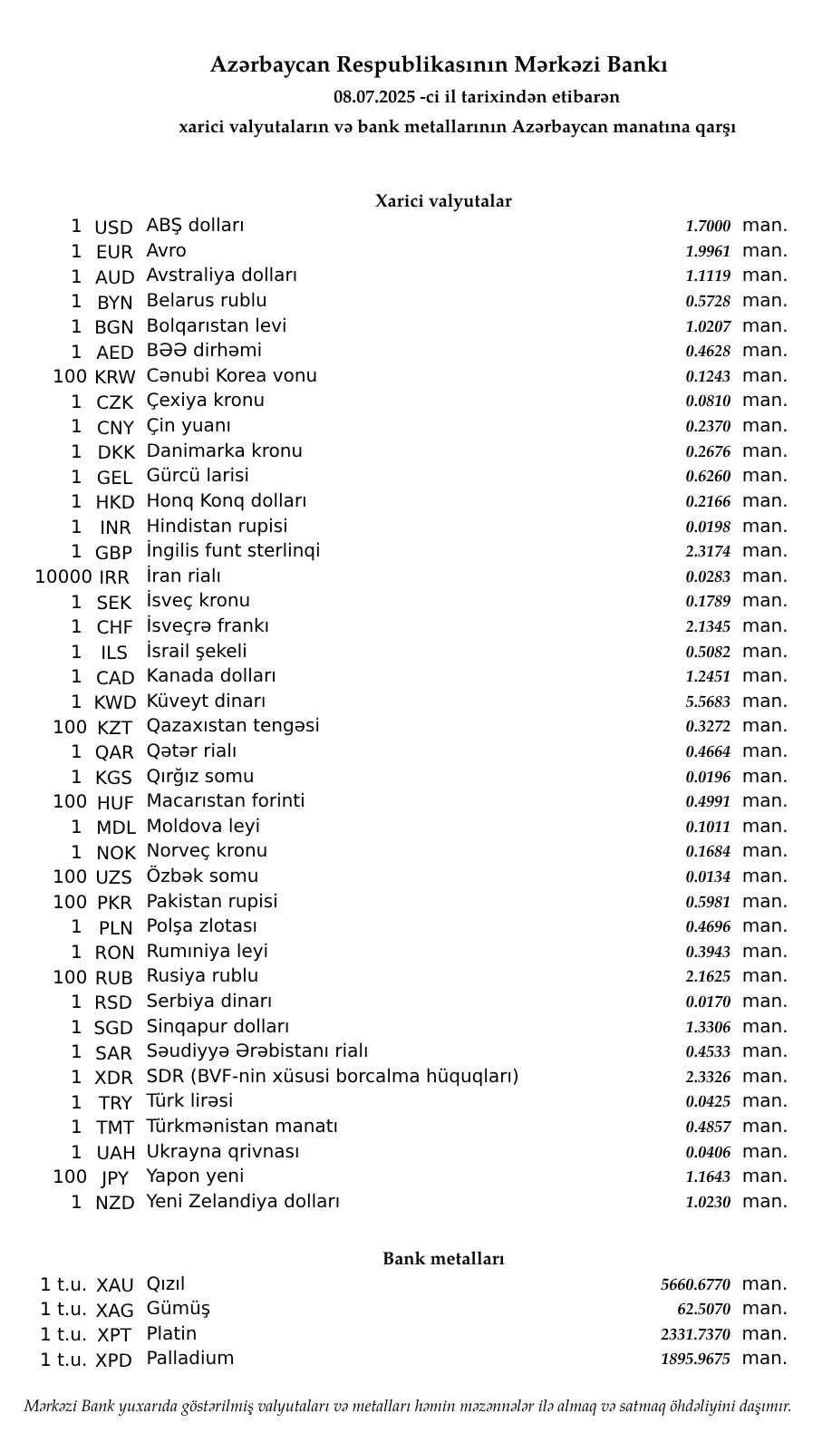 Dolların sabah üçün rəsmi məzənnəsi müəyyən olunub