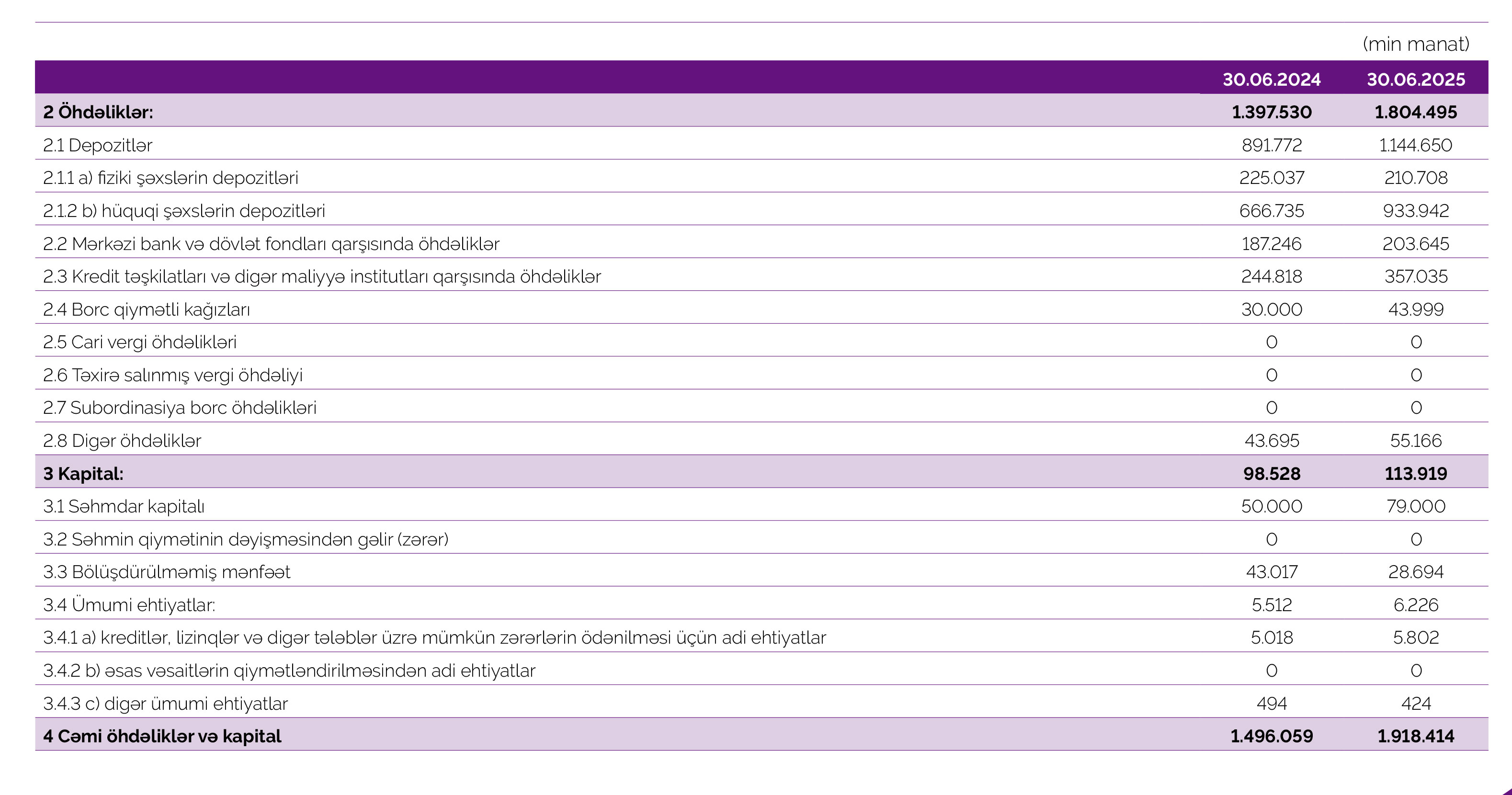 30 iyun 2025-ci il tarixində “Azər-Türk Bank”ın 107 milyon 697 min manat məcmu kapitala malik olub.