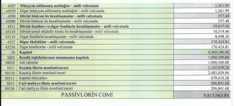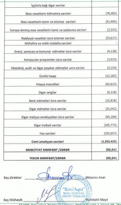 "BOKT KredAqro" MMC 2025-ci ilin ilk 6 ayını (yanvar-iyun) 207 min manat xalis mənfəət ilə başa vurub.