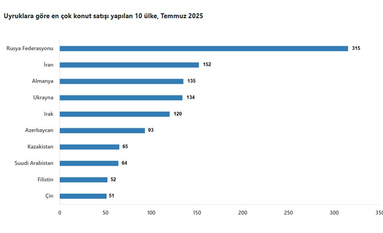 2025-ci ilin yanvar-iyul dövründə (7 ayda) Türkiyədə Azərbaycan vətəndaşlarına 501 mənzil satılıb. Bu say ötən ilin eyni dövründə 427 idi.