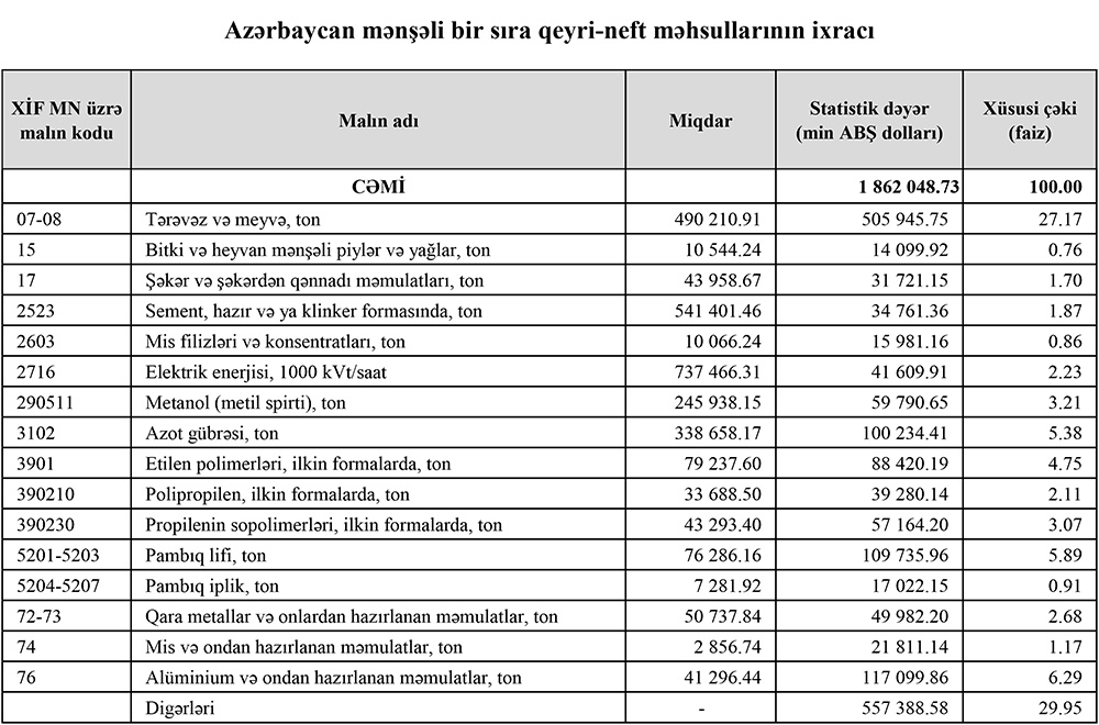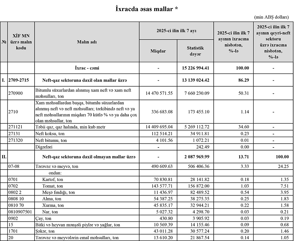 2025-cü ilin yanvar-iyul aylarında (7 ayda) Azərbaycanın ən çox ixrac və idxal etdiyi mallar.