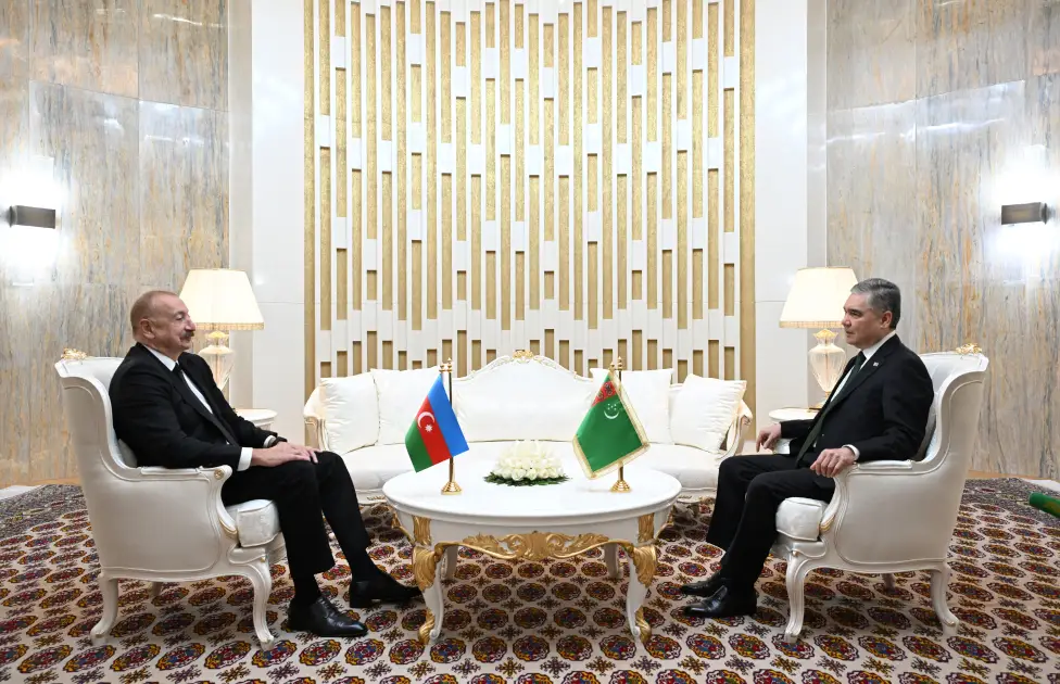 Türkmənistan Xalq Məsləhətinin sədri Qurbanqulu Berdiməhəmmədov deyib: Əziz dostum, Azərbaycan Respublikasının Prezidenti. Sizi bu gün ölkəmizdə görməyimə çox şadam. Bizi Xəzər dənizi birləşdirir. Əminəm ki, ikitərəfli görüşümüz məhsuldar olacaq. İkitərəfli görüşdən başqa, həmçinin Türkmənistan-Azərbaycan-Özbəkistan formatında üçtərəfli görüşün keçirilməsi də planlaşdırılır.