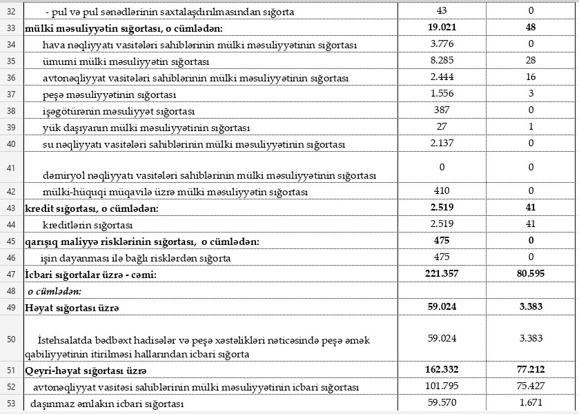 Sığorta haqları və sığorta ödənişləri - ŞİRKƏTLƏR VƏ SİNİFLƏR ÜZRƏ