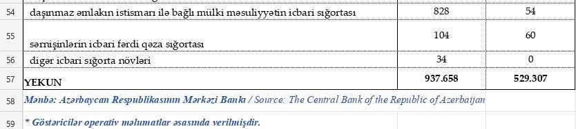 Mərkəzi Bank 2025-ci ilin yanvar-iyul ayları (7 ay) üzrə hesablanmış sığorta haqları və sığorta ödənişləri üzrə məlumatlarını açıqlayıb.