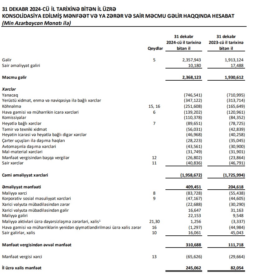 31 dekabr 2024-cü il tarixində "Silk Vey Vest Aviaşirkəti"nin bölüşdürülməmiş mənfəəti 1 milyard 304 milyon 671 min manata çatıb.