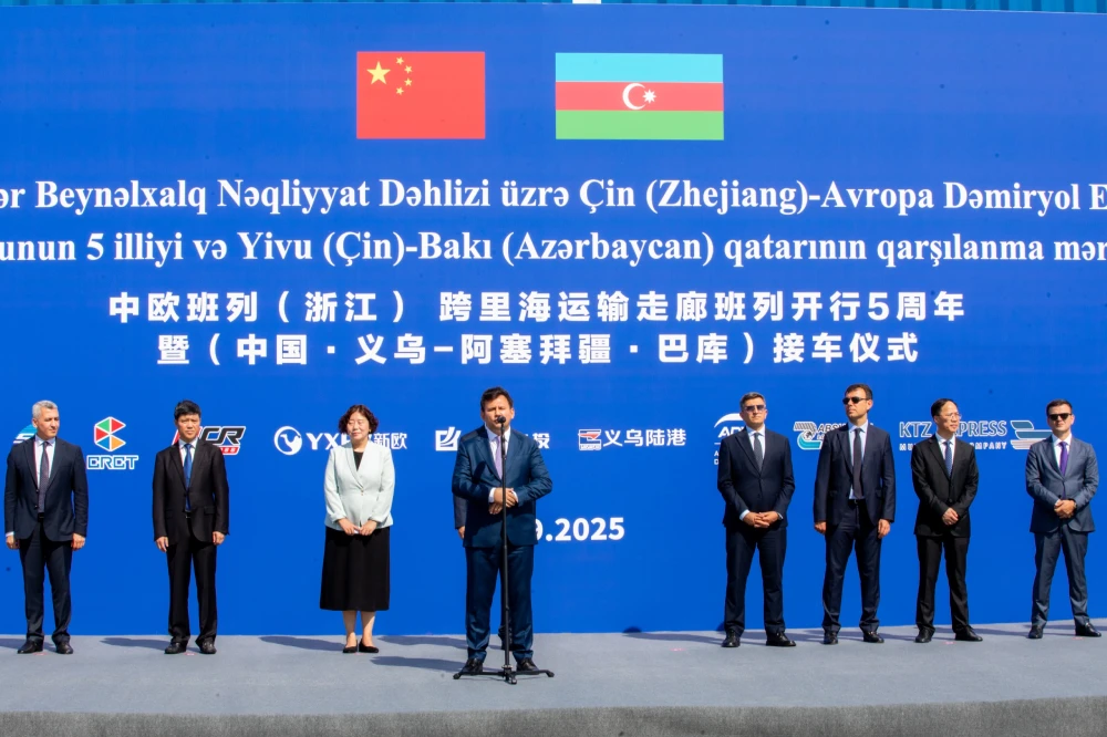 9 sentyabr 2025-ci il tarixində Abşeron Logistika Mərkəzində Trans-Xəzər Beynəlxalq Nəqliyyat Marşrutundan (TBNM) keçən Çin (Çjetszyan) – Avropa Dəmiryol Ekspres marşrutunun 5 illiyi və Yivu (Çin) – Bakı (Azərbaycan) qatarının qarşılanmasına həsr edilmiş tədbir keçirilib.