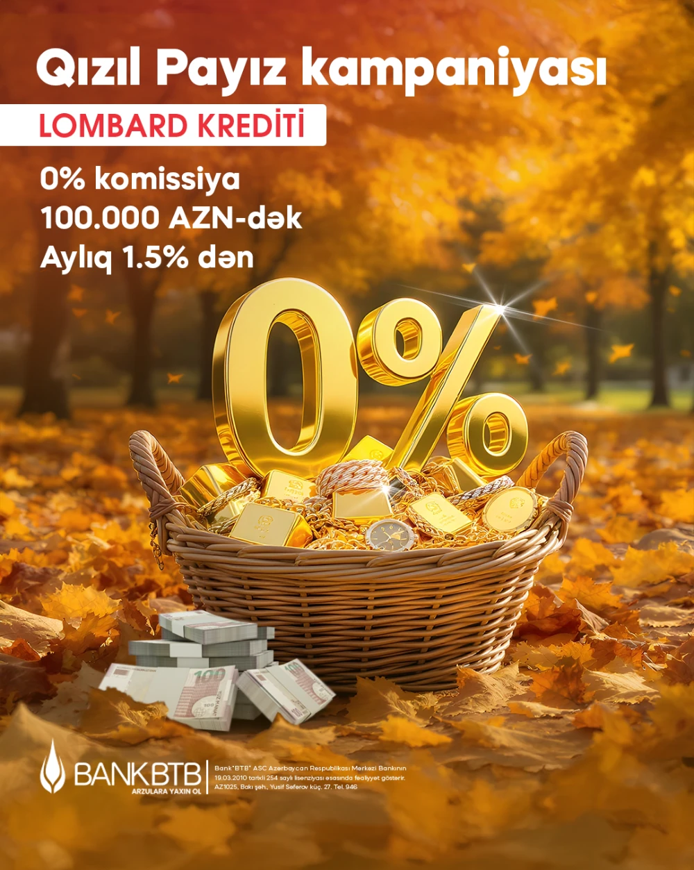 (®) Bank “BTB” ASC müştərilərinə lombard krediti üzrə ən sərfəli şərtlərlə “Qızıl Payız” kampaniyasını təqdim edir!