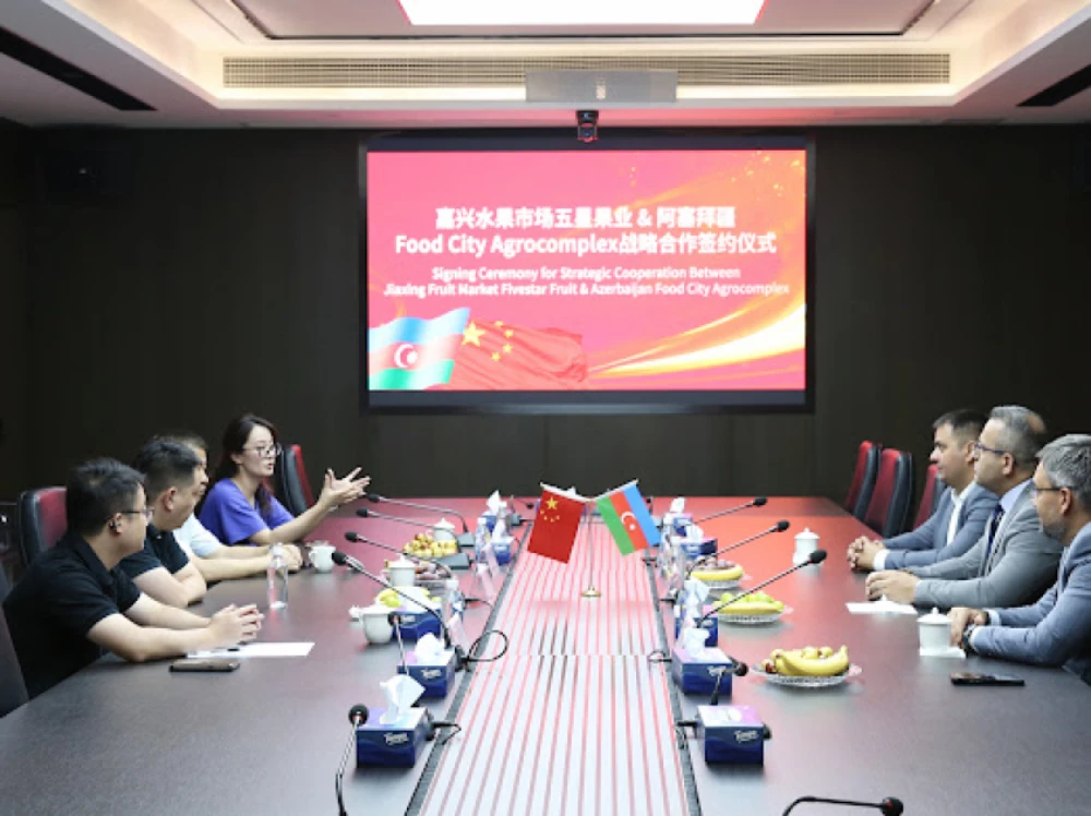 Food City Agrocomplex və Çinin iri meyvə bazarı"Jiaxing Fruit Market" arasında əməkdaşlıq memorandumu imzalanıb Əməkdaşlığın əsas məqsədi tərəflərin qarşılıqlı tərəfdaş kimi tanınması, Azərbaycan məhsullarının – xüsusilə də yaş meyvə və tərəvəzlərin Çinə ixracının təşviqi, eyni zamanda Çin məhsullarının Azərbaycan üzərindən Avropaya çıxışı üçün regional tranzit və multimodal daşıma imkanlarının yaradılmasıdır.Azərbaycanın şimal bölgəsində yerləşən, “bir pəncərə” sistemi ilə idarə edilən çoxfunksiyalı logistik hab olan “Food City Agrocomplex” ilə Çinin iri meyvə bazarı “Jiaxing Fruit Market” arasında strateji əməkdaşlıq memorandumu imzalanıb.