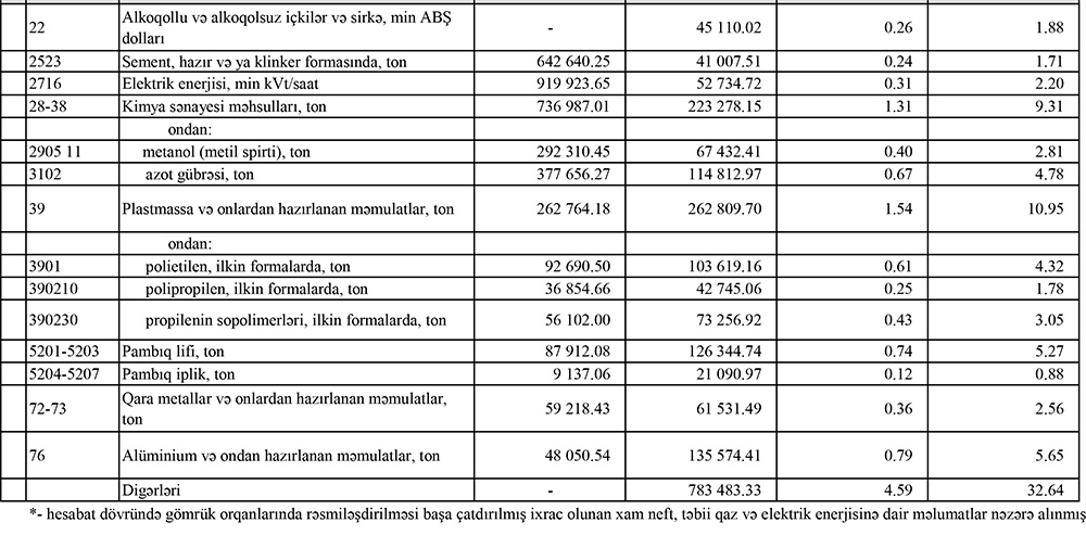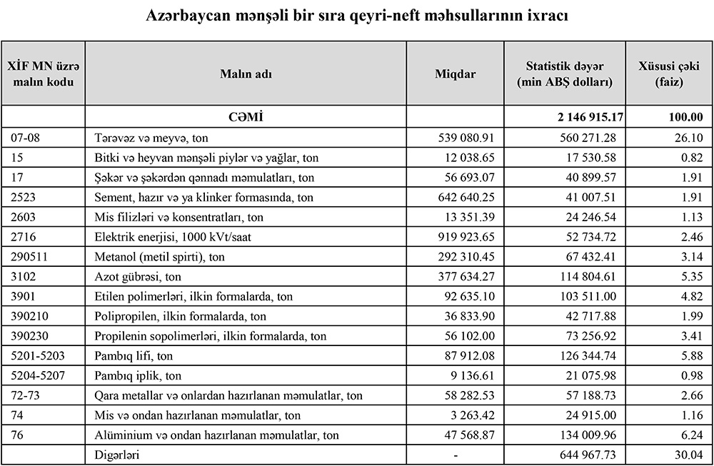 Azərbaycanın ən çox ixrac və idxal etdiyi mallar - YENİ SİYAHI