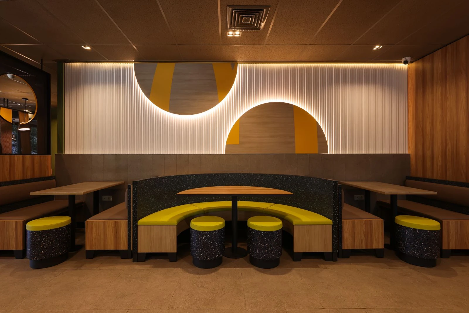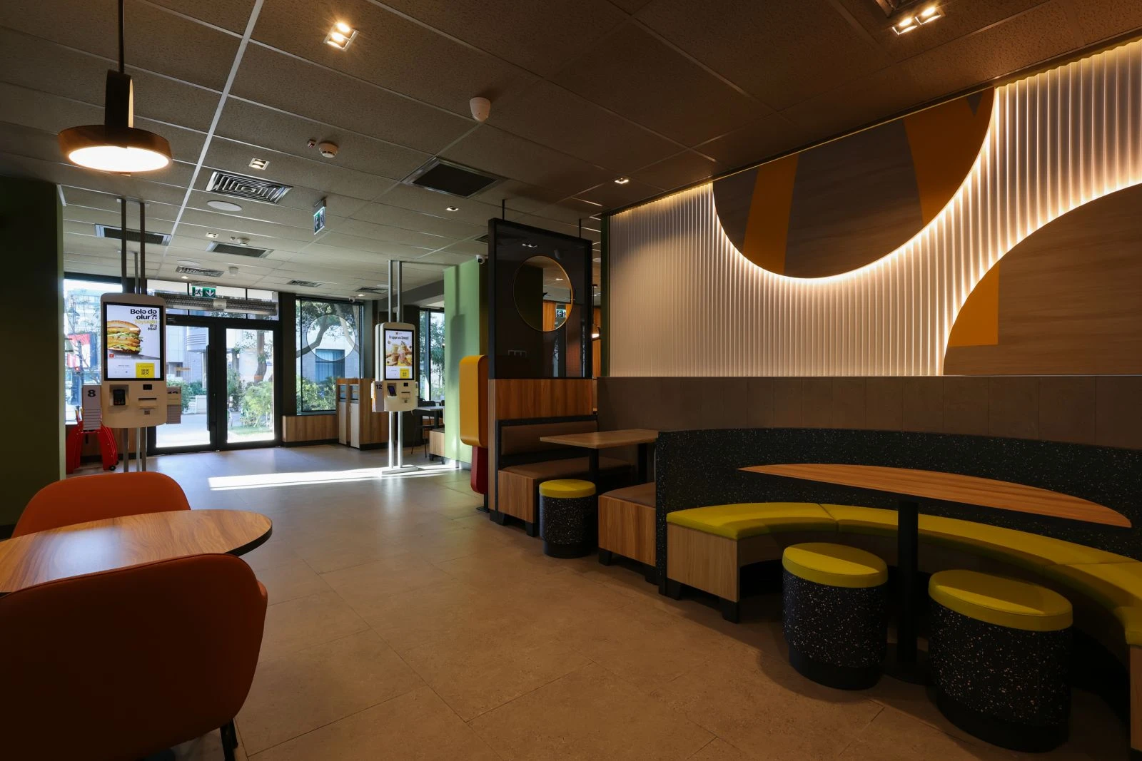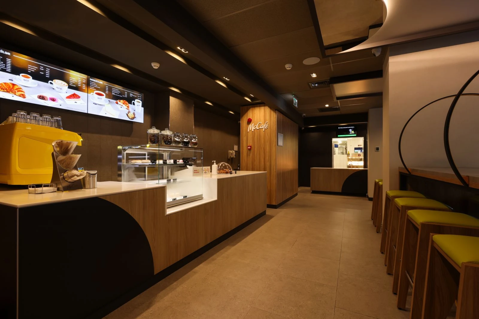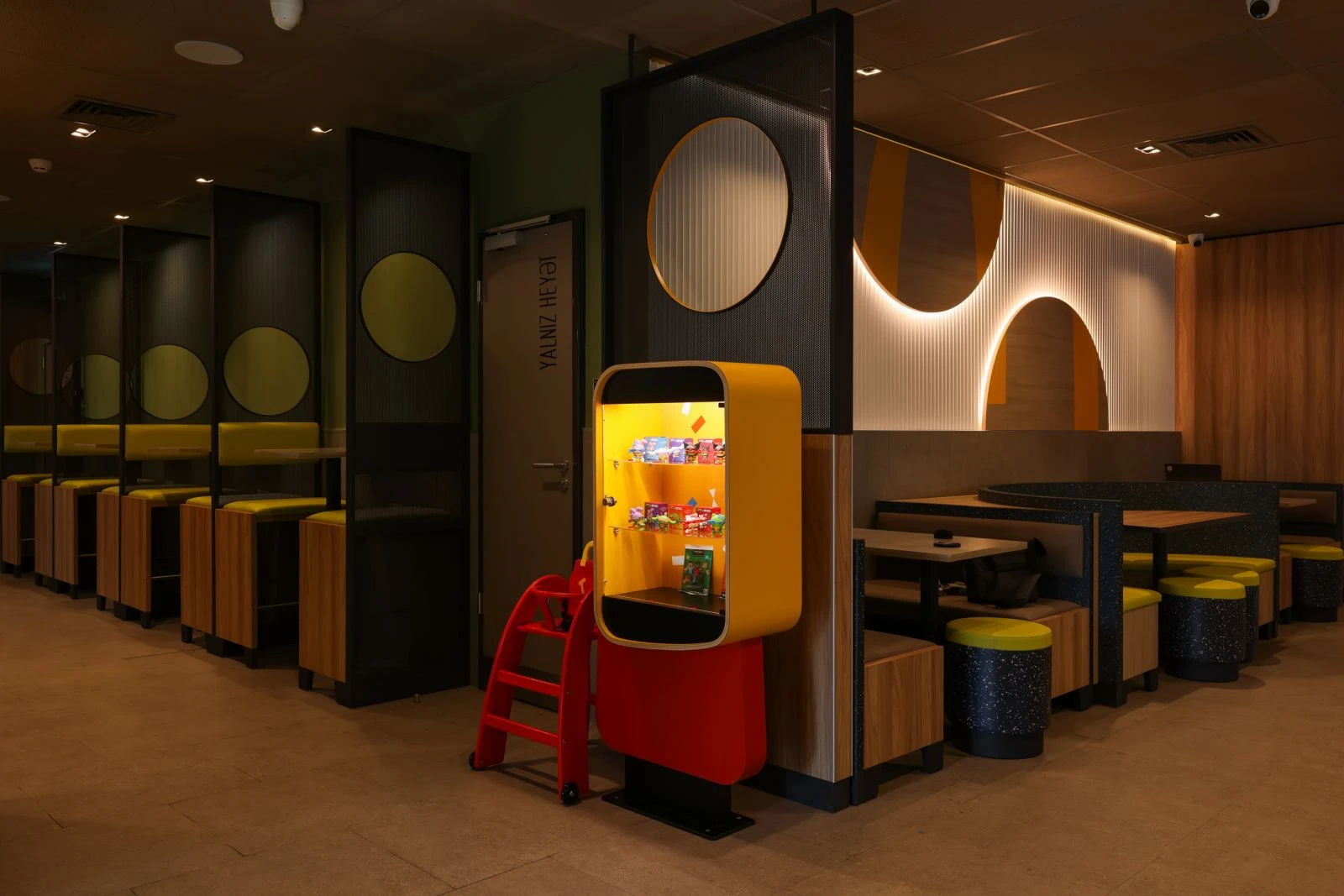 Restoran 125 qonaq üçün nəzərdə tutulub və müasir in-store formatında — “Luna” dizaynında tikilib. Bu dizayn üslublu memarlıq həlləri və funksional planlaşdırmanı birləşdirərək ziyarətçilər üçün rahat mühit yaradır.