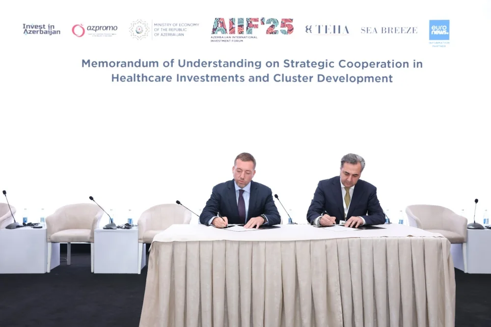 Potensial tibbi klaster layihələrinin birgə qiymətləndirilməsi üzrə Anlaşma Memorandumu imzalanıb. Tibbi klasterdə potensial layihələrin texniki-iqtisadi əsaslandırmasını nəzərdə tutan Memorandum Azərbaycan Biznesin İnkişafı Fondu (ABİF) ilə “Sea Breeze Health Valley” (“Sea Breeze Resort”) arasında imzalanıb. Sənədi ABİF-in baş direktoru Yasin Cəlilov və “Sea Breeze Health Valley” şirkətinin rəhbəri Konstantin Qrinfeld imzalayıblar.