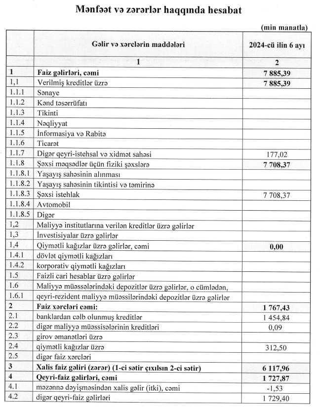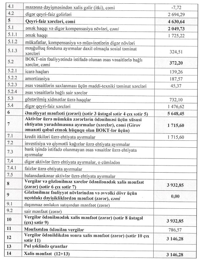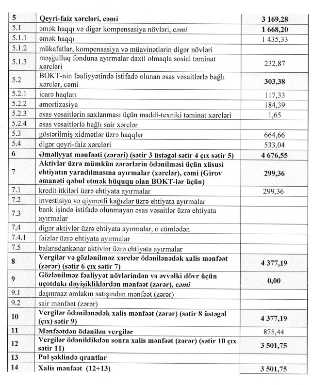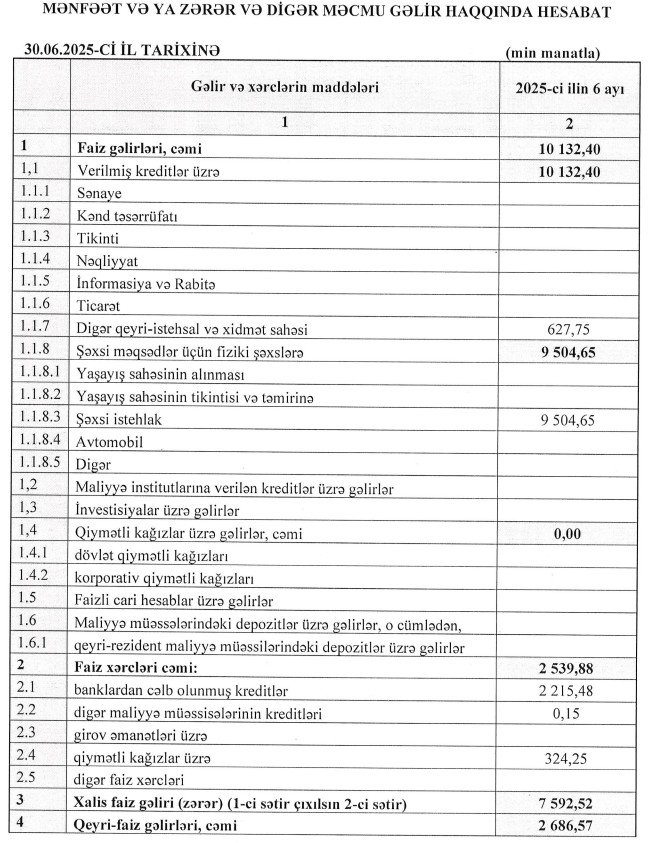 Şirkətdən Marja.az-a verilən məlumata görə, hesabat dövründə xalis mənfəətin əvvəlki ilin eyni dövrü ilə müqayisədə müəyyən qədər azalması, aktivlər üzrə mümkün zərərlərin ödənilməsi məqsədilə xüsusi ehtiyat ayırmalarının artırılması ilə əlaqədardır. Bu qərar, şirkətin risklərin idarə edilməsi siyasətinə uyğun olaraq, potensial kredit risklərinin qabaqlayıcı şəkildə qarşılanması və gələcək dövrlərdə maliyyə dayanıqlığının təmin edilməsi məqsədilə qəbul edilmişdir.