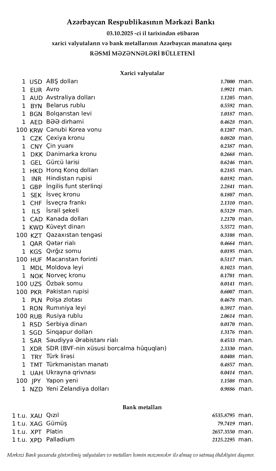 Dolların sabah üçün rəsmi məzənnəsi müəyyən olunub