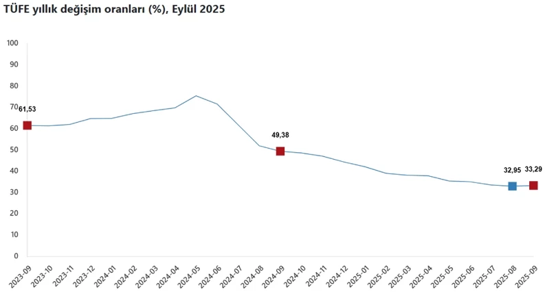 Aylıq inflyasiya 3,23%, illik inflyasiya 33,29% səviyyəsində qeydə alınıbTürkiyə Statistika Qurumunun (TÜİK) məlumatına görə, 2025-ci ilin sentyabr ayında ölkədə aylıq inflyasiya 3,23% olub.