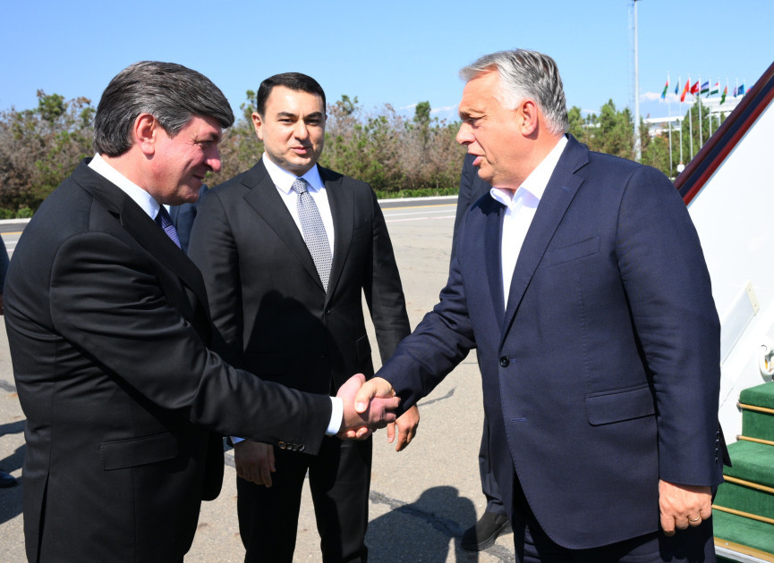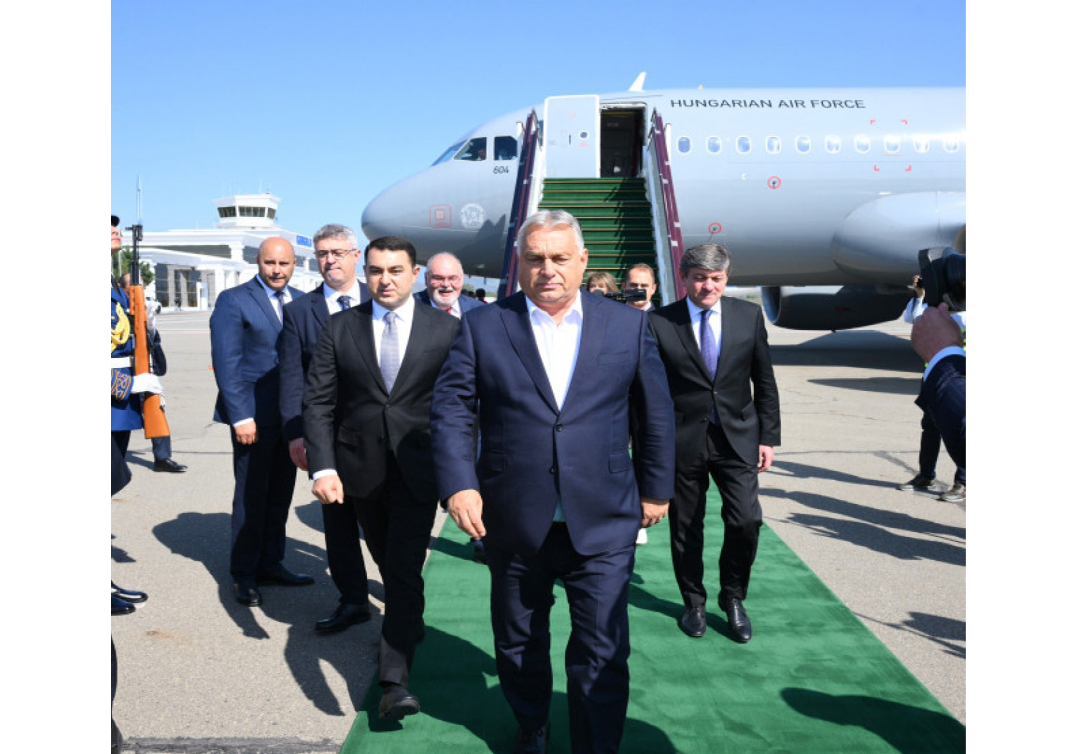 Macarıstanın Baş naziri Viktor Orbanı hava limanında Azərbaycanın mədəniyyət naziri Adil Kərimli və digər rəsmi şəxslər qarşılayıblar.