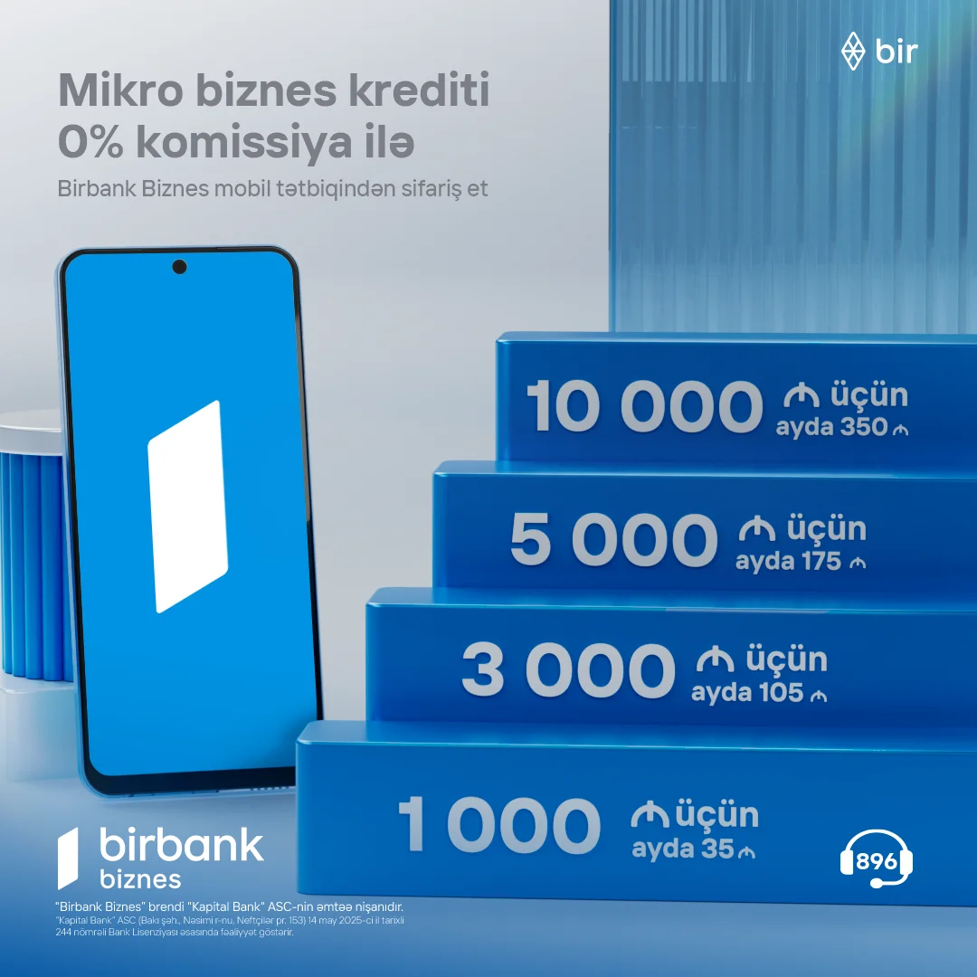 Sahibkarlığın inkişafına önəm verən Birbank Biznes Kapital Bank-ın əmtəə nişanı olaraq həm sahibkarların, həm də onların bizneslərinin inkişafına dəstək olur, biznes sahiblərinə innovativ və rahat məhsullar təqdim edir. Birbank Biznes müştərilərində suallar yaranarsa, onlara istənilən vaxt canlı çat vasitəsilə də dəstək göstərilir. Sahibkarlara vaxta qənaət etmək imkanı verən Birbank Biznes sistemi haqqında ətraflı məlumat üçün https://birbank.business/ saytına keçid edin və ya 896 məlumat mərkəzinə zəng edin.