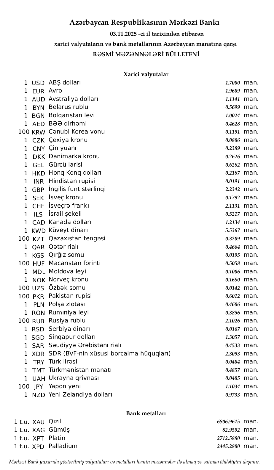 Dolların sabah üçün rəsmi məzənnəsi müəyyən olunub