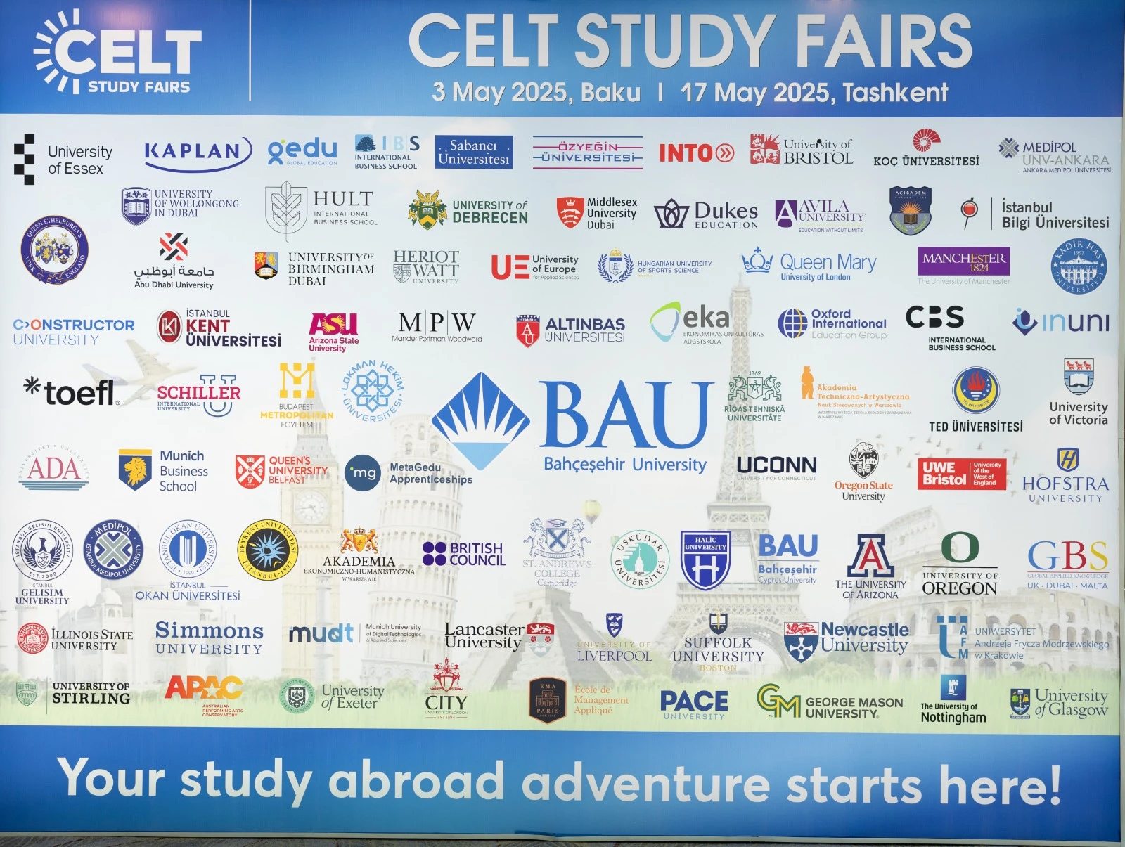 CELT Study Fairs tərəfindən təşkil olunan bu sərgi artıq illərdir ki, minlərlə tələbənin xaricdə təhsil arzusunu reallaşdırmağa kömək edir. Bu dəfəki sərgidə də çoxsaylı universitetlər yeni proqramlarını, magistr və bakalavr səviyyəsində təqaüd təkliflərini təqdim edəcək.
