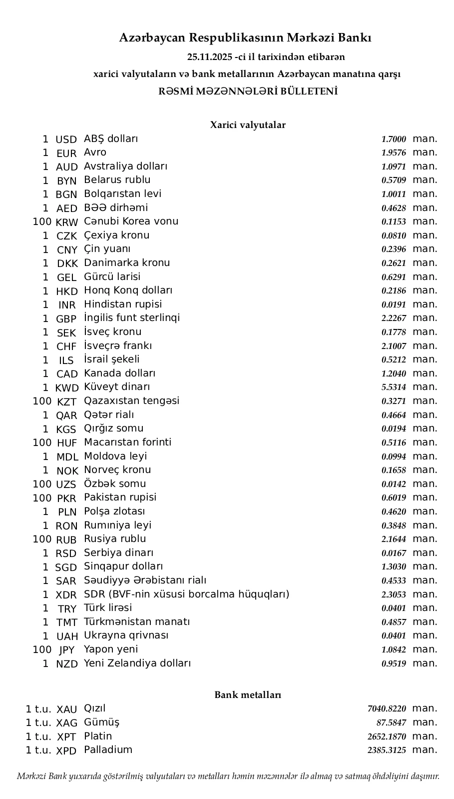 Dolların sabah üçün rəsmi məzənnəsi müəyyən olunub