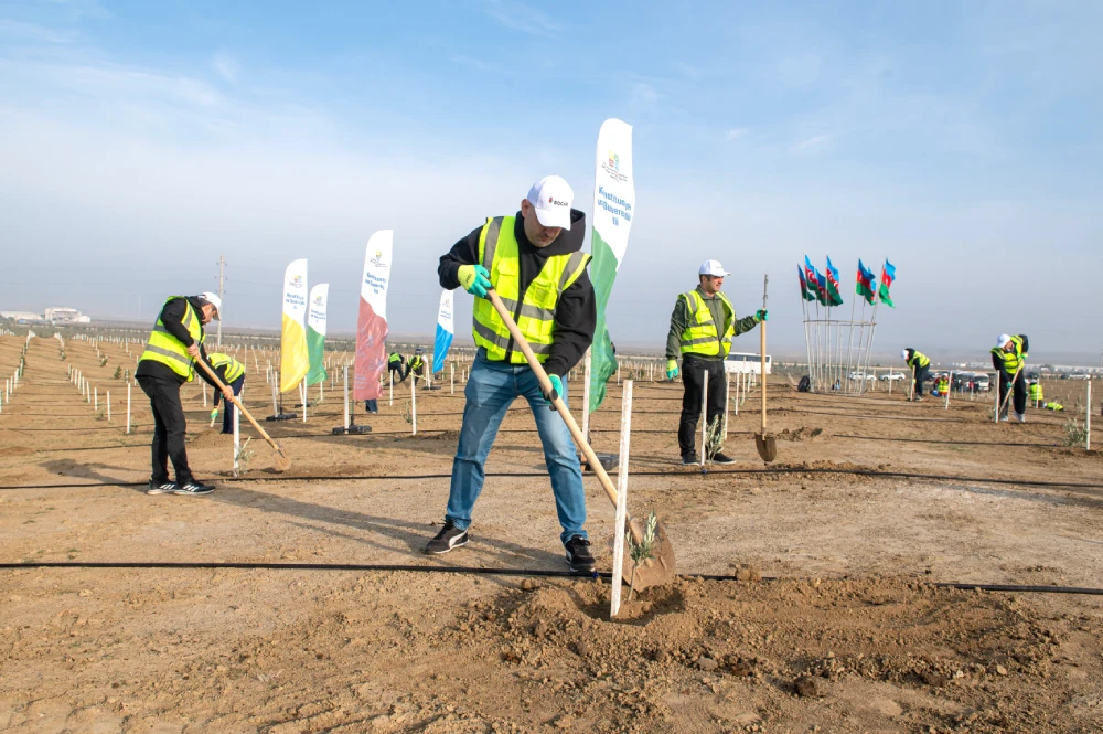 Bakı–Şamaxı yolunun 30-cu kilometrliyində yaşıllaşdırma üçün ayrılmış ərazidə keçirilən aksiya çərçivəsində 1 hektar sahədə ümumilikdə 625 ədəd ağac əkilib. Ərazinin iqlim xüsusiyyətləri nəzərə alınaraq Eldar şamı və zeytun növlərindən olan tinglər seçilib, həmçinin ağacların davamlı su təminatı üçün damcı-suvarma sistemi quraşdırılıb.