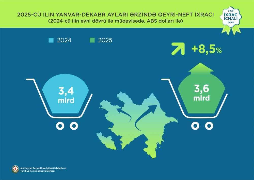 İqtisadi İslahatların Təhlili və Kommunikasiya Mərkəzi (İİTKM) “İxrac icmalı”nın 2026-cı ilin yanvar sayına dair ilkin rəqəmləri təqdim edib.
