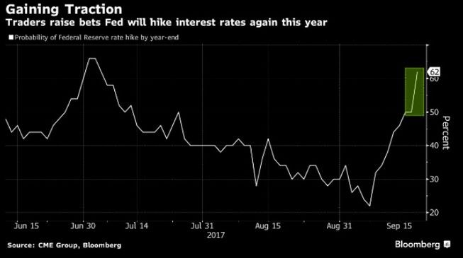 "Marja" xəbər verir ki, treyderlər, Fed-in bu il daha bir dəfə faiz artıracağına 62% ehtimal verirlər.
