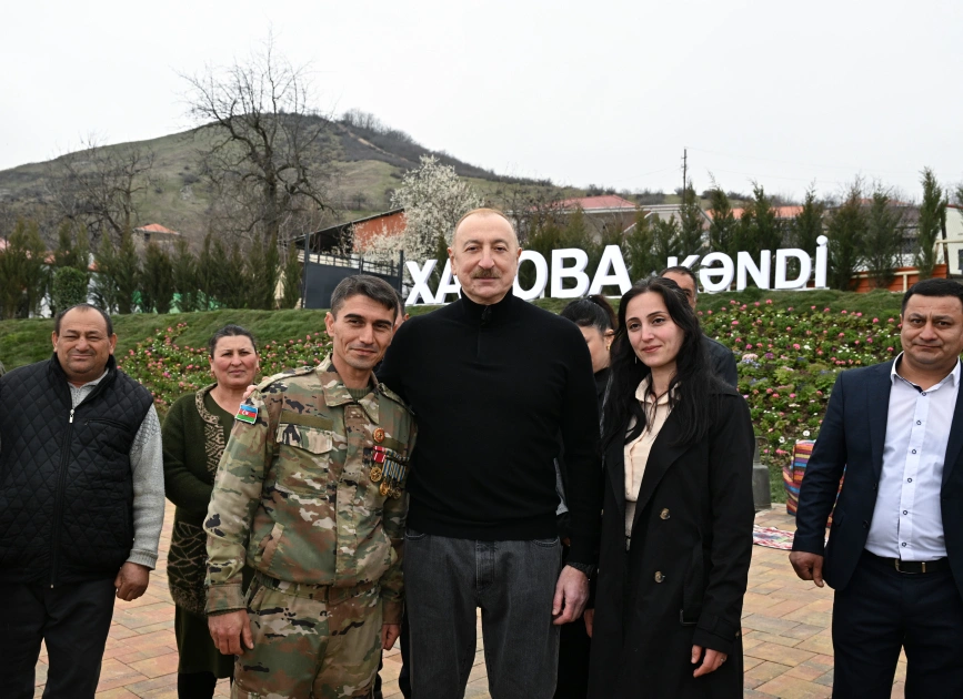 Daha sonra Prezident İlham Əliyev və birinci xanım Mehriban Əliyeva Xanobaya qayıdan kənd sakinləri ilə görüşüblər.
