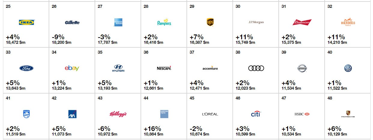 "Interbrand"ın ən dəyərli 100 marka siyahısı (http://interbrand.com/best-brands/best-global-brands/2017/ranking/).