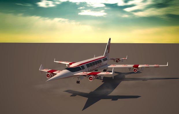 Təyyarənin qanadları qırılan və sabit hissələrdən ibarət olacaq və gövdə kimi öz oxu ətrafında və qırılma nöqtəsində şaquli istiqamətdə çevrilə biləcək. Bu zaman mühərriklər təziqi şaquli istiqamətdə vurub təyyarənin yerdən ayrılmasına kömək edəcək. Qanaqlarda yerləşdirilən kiçik mühərriklər alternativ enerji təminatını həyata keçirəcək.