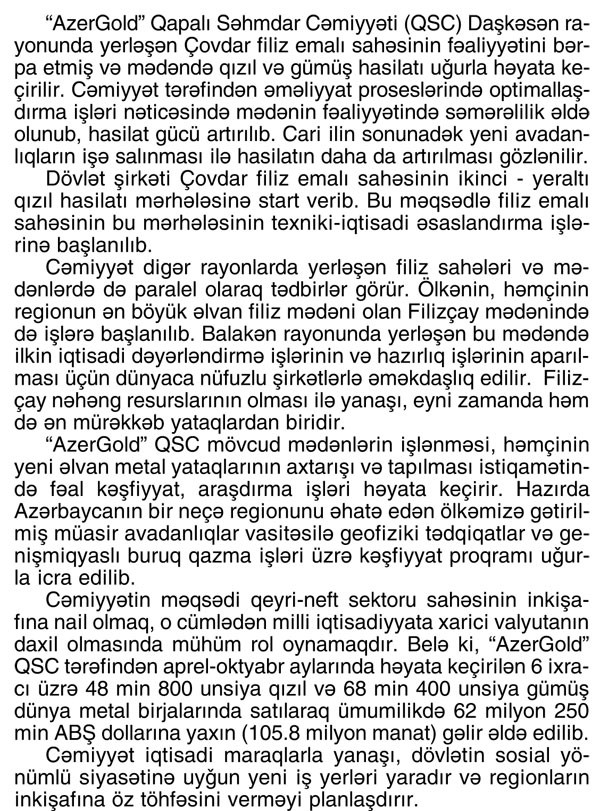 “AzerGold” əlvan metalların hasilatını artıracaq – START VERDİ