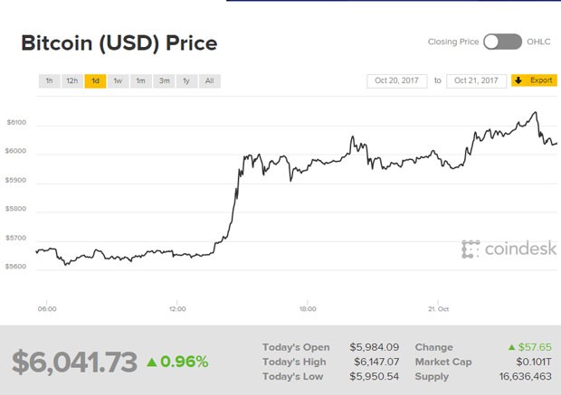 "Marja" Coindesk-ə istinadən xəbər verir ki, Bitcoin-in qiyməti 6147 dolları görüb. Bakı vaxtı ilə saat 09:00-da Bitcoin-in qiyməti 6042 dollar təşkil edib.
