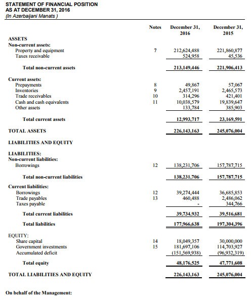 “Baku Bus” MMC-nin cəmi aktivləri 2017-ci il yanvarın 1-nə 226 milyon 143 min manat təşkil edib.