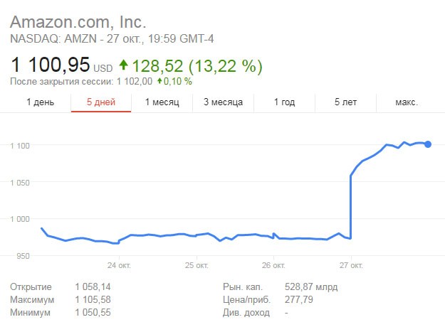 Dünən Nyu-York Birjasında Amazon-un səhmləri 13,3 faiz bahalaşıb və şirkətin səhminin dəyəri şirkət tarixindəki ən yüksək səviyyə olan 1105 dollara qədər qalxıb.