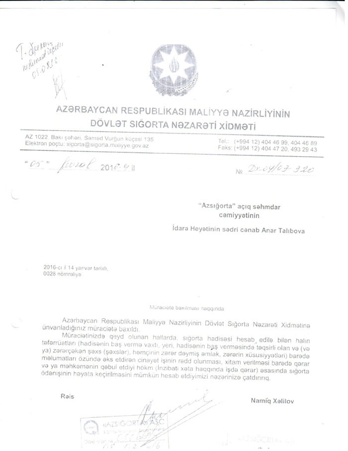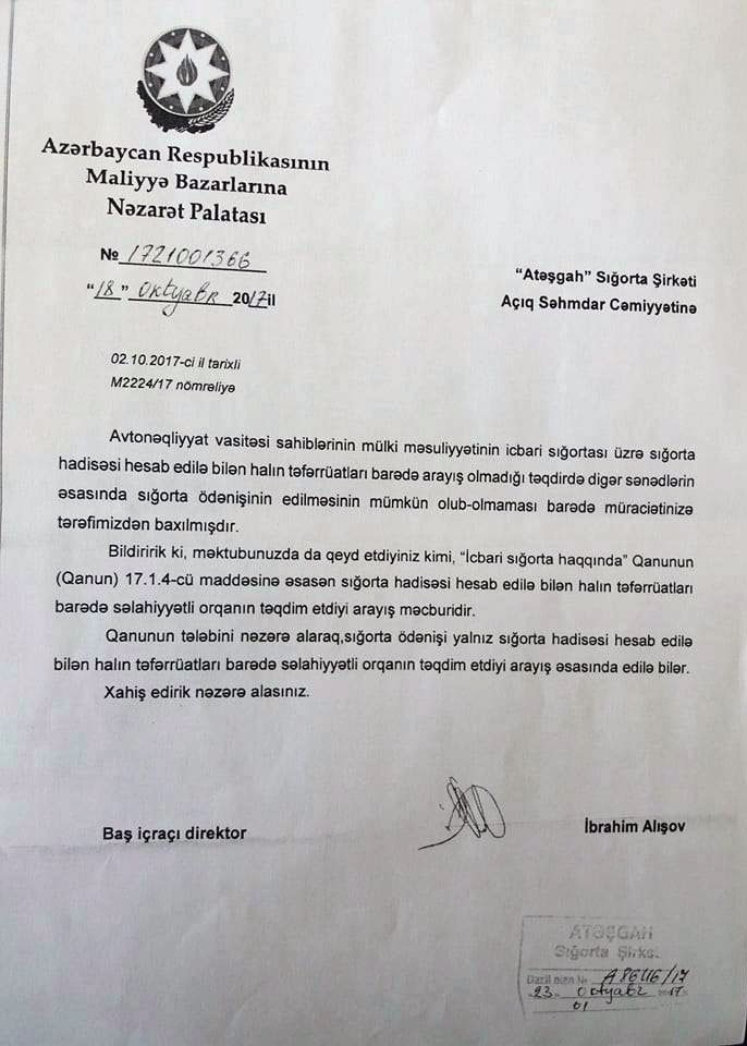 "Eyni hal üzrə 2 ayrı sığorta şirkətinə müxtəlif göstəriş verilib"