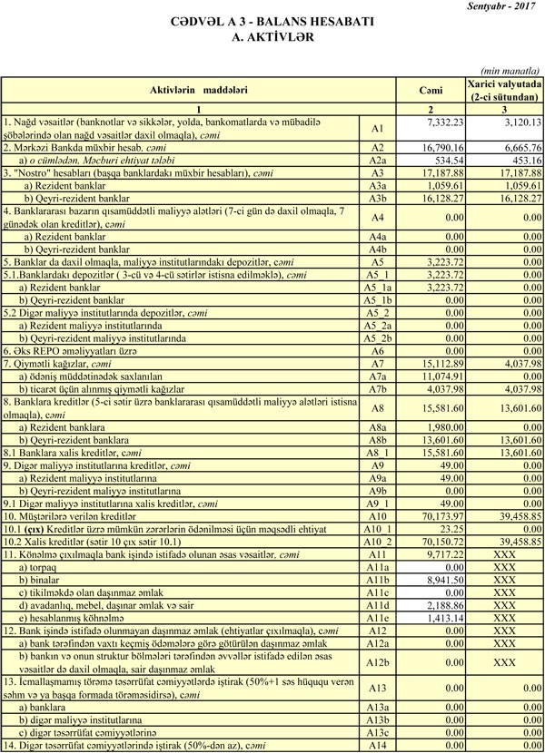 Bankda fiziki şəxlərin müddətli depozitləri (əhalinin əmanətləri) isə 17 milyon 158 min manatdan 36 milyon 574 min manata qalxıb.