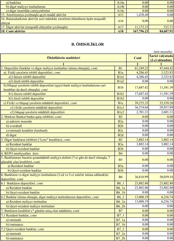 Bank ötən ilin sonunda 132 milyon 195 min manat cəmi aktivlərə, 71 milyon 566 min manat cəmi öhdəliklərə və 60 milyon 630 min manat cəmi balans kapitalına malik idi.