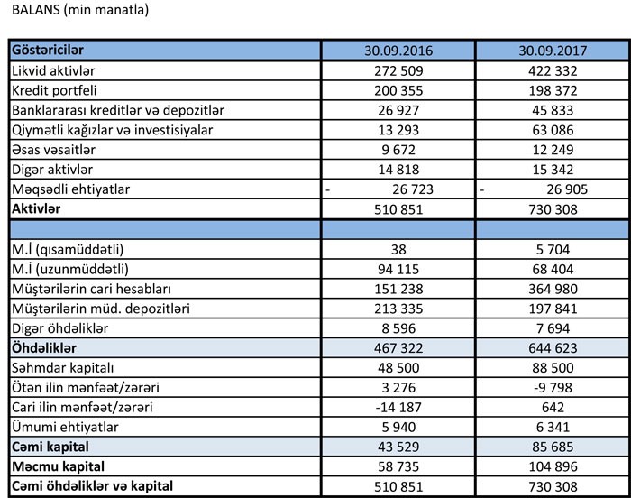 Bank 9 ayı 642 min manatlıq mənfəətlə başa vurub.