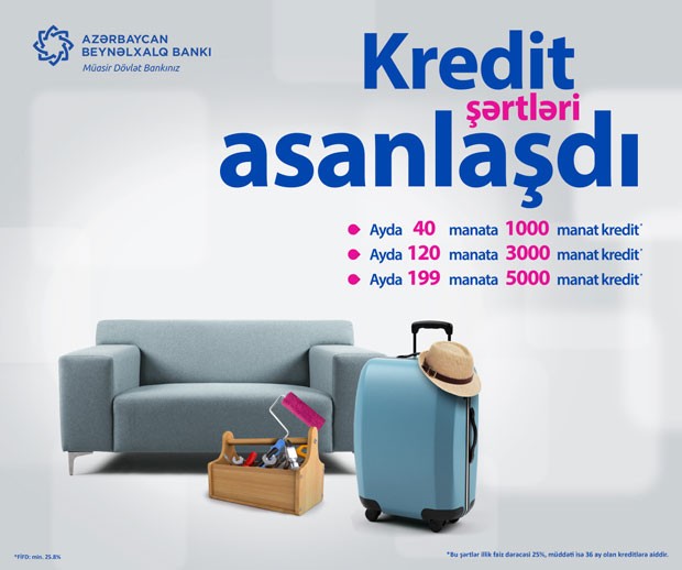 Müxtəlif ehtiyacların qarşılanması üçün nəzərdə tutulmuş nağd pul kreditini Azərbaycan Beynəlxalq Bankının bütün filiallarından almaq olar. Bunun üçün sadəcə şəxsiyyət vəsiqəsi, eləcə də bankın əmək haqqı, yaxud pensiya kartı ilə filiallara yaxınlaşmaq kifayətdir. Kredit rəsmiləşdirilən zaman müştəriAvtoödəmə sisteminə qoşulmaqla aylıq kredit borclarının ödənişini banka gəlmədən rahat bir şəkildə həyata keçirə bilər.