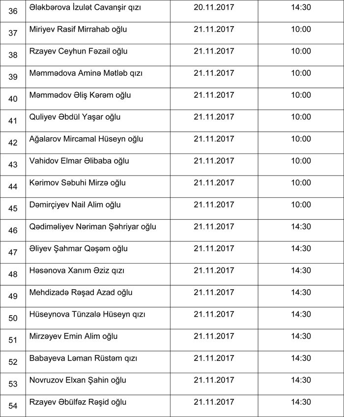 Attestasiyada iştirak edənlərin siyahısı ilə bu link vasitəsi ilə tanış ola bilərsiniz.