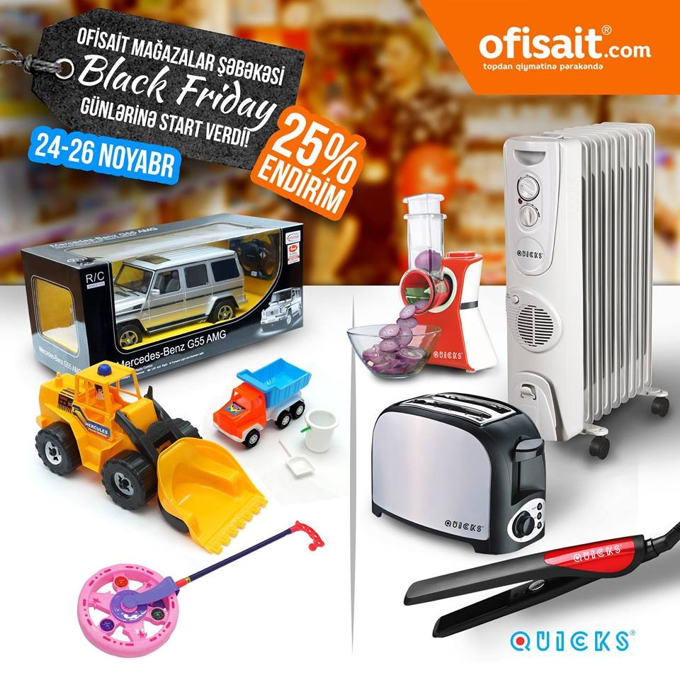 "Ofisait" mağazalar şəbəkəsində "Qara cümə" (Black Friday) günləri başlayıb. Noyabr ayının 24-dən başlamış endirimlər 25 və 26-sı da davam edəcəkdir.