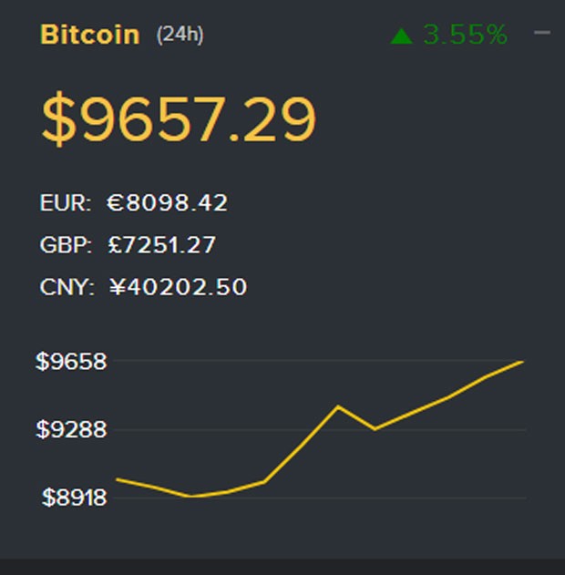 Bitcoin, 8000 dollar səviyyəsini keçdikdən qısa bir müddət sonra 9000 dolları da keçərək 10000 dollar səviyyəsinə yönəlib