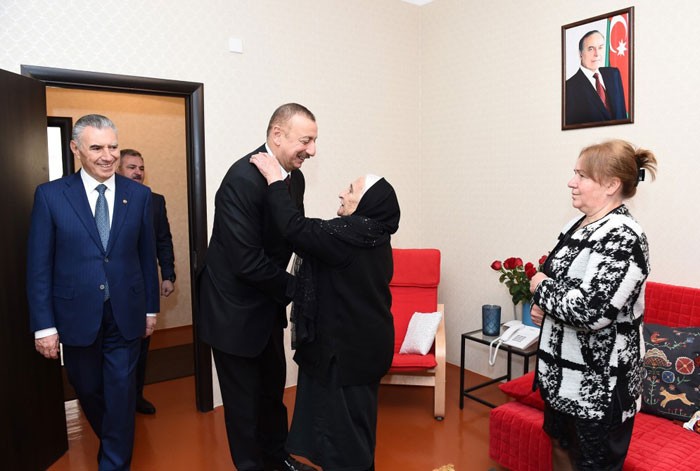 Prezident İlham Əliyev Ağdam rayonundan məcburi köçkün Pakizə Məmmədovanın mənzilində oldu, yaradılan şəraitlə maraqlandı.