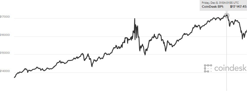 Bitcoin 15000 dollar səviyyəsini keçməsindən saatlar sonra 16000 dollar səviyyəsini, daha sonra da 17000 dolları keçib.