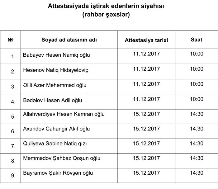 Attestasiyada iştirak edənlərin siyahısı əlavə olunur.