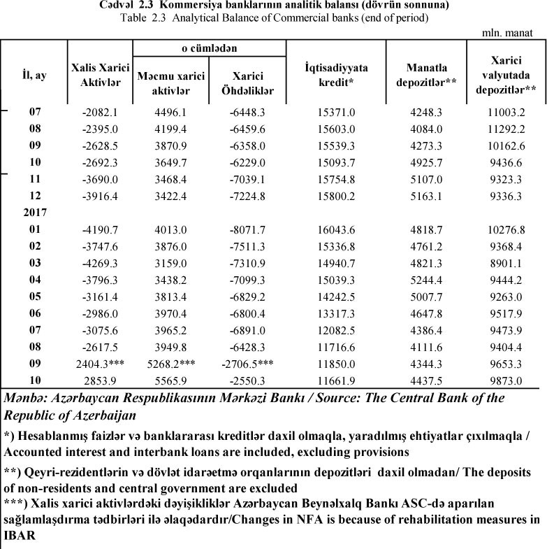 Sentyabra ayının sonunda bankların cəmi xarici öhdəlikləri avqust ayının sonundakı 6 milyard 428.3 milyon manatdan 2 milyard 706.5 milyon manata düşmüşdü (3 milyard 721,8 milyon manat azalmışdı). Xarici öhdəliklərdə azalma Azərbaycan Beynəlxalq Bankı ASC-də aparılan sağlamlaşdırma tədbirləri ilə əlaqədardı.