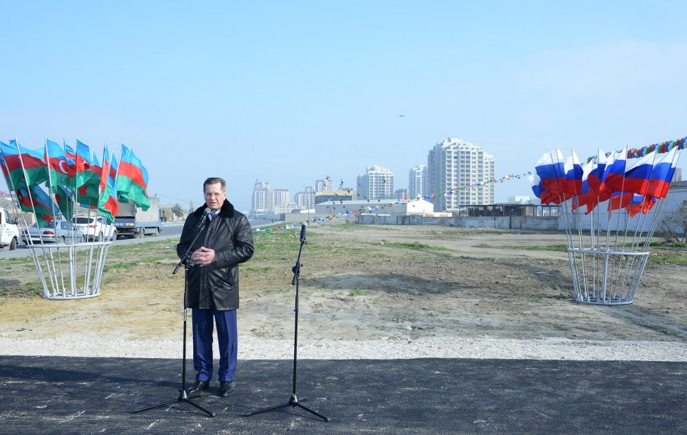 Təməlqoyma mərasimində Azərbaycan Respublikası Prezidentinin ictimai-siyasi məsələlər üzrə köməkçisi Əli Həsənov, Rusiya Federasiyasının Həştərxan vilayətinin qubernatoru Aleksandr Jilkin, digər rəsmi şəxslər, iş adamları və ictimaiyyətin nümayəndələri iştirak ediblər.