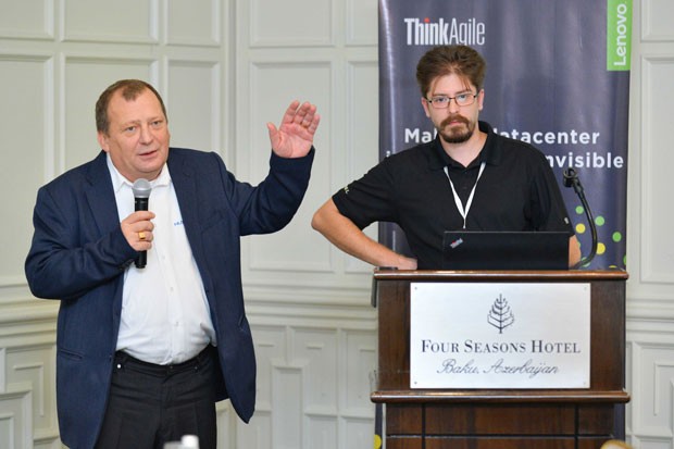 Daha sonra tədbir iştirakçıları qarşısında Nutanix-in nümayəndəsi Roman Xmelevskiy məruzə ilə çıxış etdi. O, İT sahəsində “görünməz” infrastrukturun nüansları haqda danışdı. Lenovo Datacenter Group Departamentinin Azərbaycandakı əsas sifarişçilərlə iş üzrə rəhbəri Rasim Baxşi qonaqları Lenovo ThinkAgile aparat platforması ilə tanış etdi. Veeam şirkətini təmsil edən Pavel Kosarev isə məlumatların davamlı qorunması üzrə ən son məhsullarını təqdim etdi.